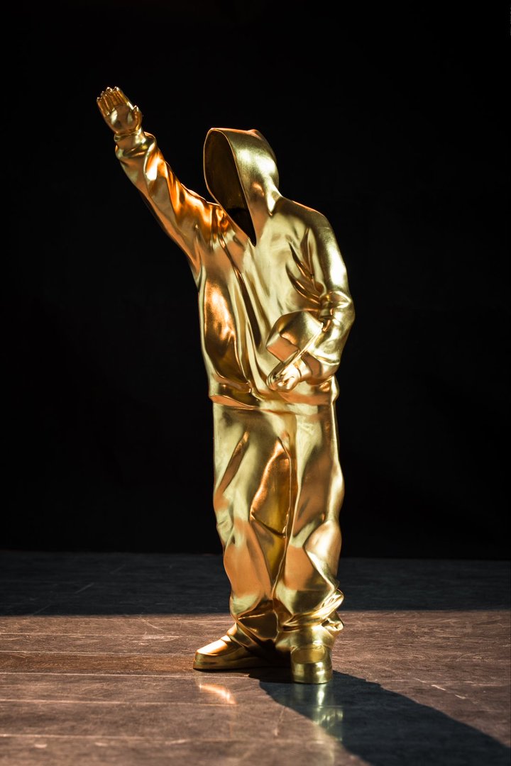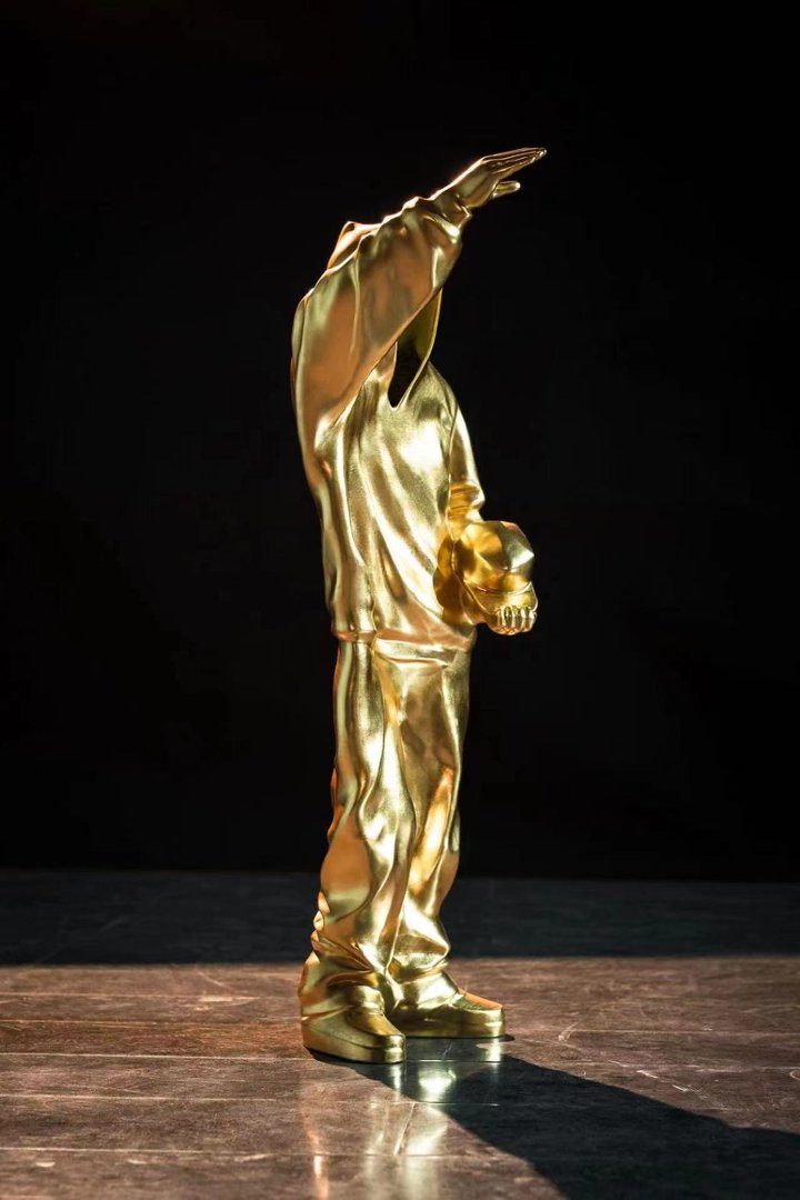 Works Information Title: LEADER 3 Year: 2018 Material: Copper with gold leaf Dimensions: 53 cm (H) x 18 cm (W) x 18 cm (D)